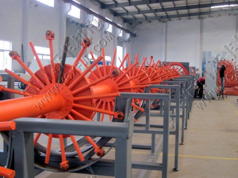 上料→穿筋(主筋)→固定→搭上箍筋→開始焊接→正常焊接→終止焊接→切斷箍筋→分離固定盤→松筋→分離移動盤→卸籠→降下液壓支撐→移動盤歸位→完成