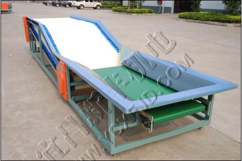 提升和預(yù)選平臺:提升斜工作面是使水果在進(jìn)入預(yù)選平臺前均勻平鋪,人工預(yù)選平臺的輸送管在運行的過程中帶動水果不斷旋轉(zhuǎn),增加可視性。