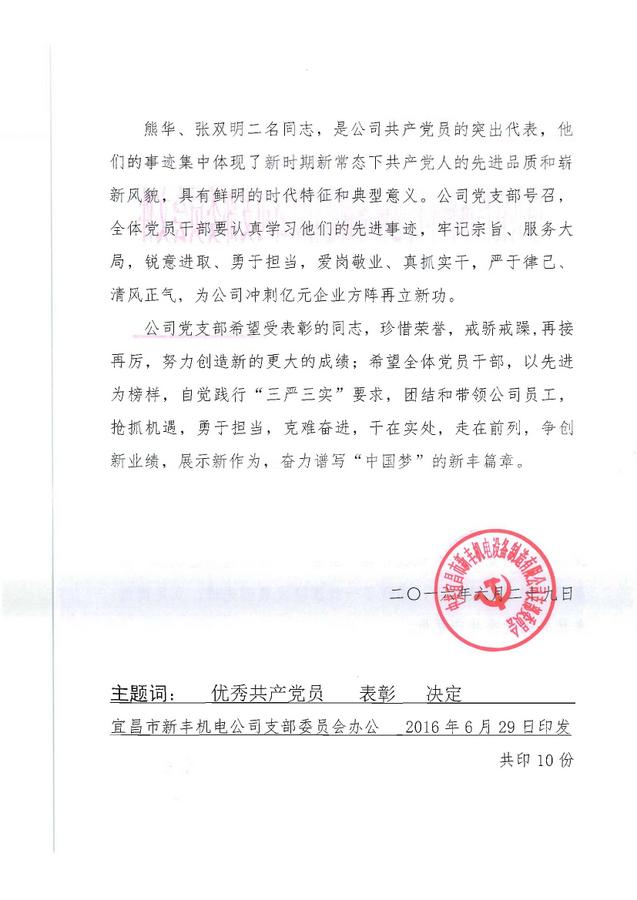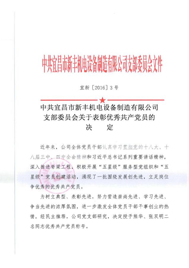 關于表彰優秀共產黨員的決定